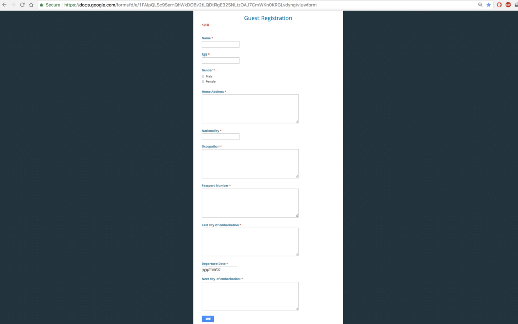 注意点として、保健所はパスポート情報も同時に集めることを要求する場合があります。有料バージョンのG Suiteというものを使えば、パスポートもこのグーグルフォームに組み込むことができますが、無料のグーグルフォームではそれはできないので、その都度メールでゲストにパスポートを送ってもらう必要があります。