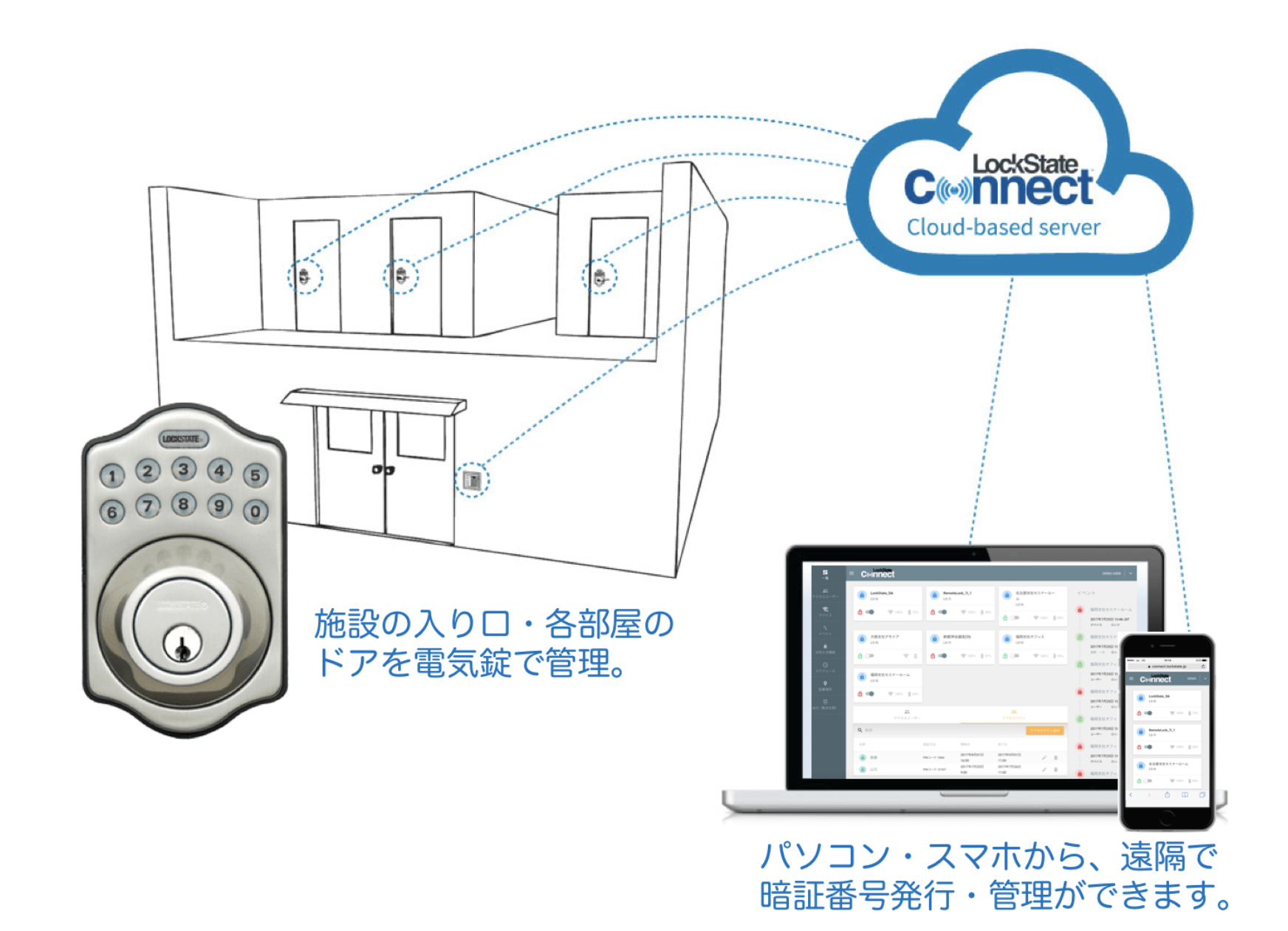 - リモートロックはテンキーの操作によってドアの施錠・解錠が可能です。