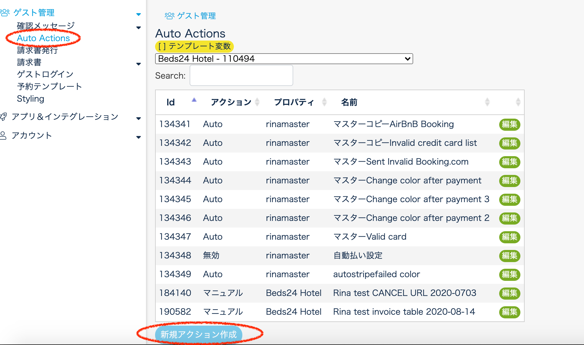 設定箇所:設定 > ゲスト管理 > Auto Actions