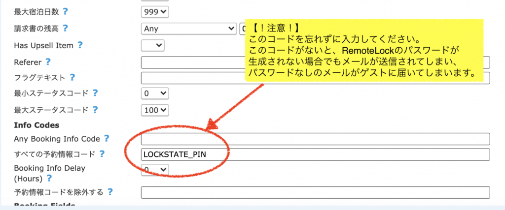 お部屋のパスワード: [BOOKINGINFOCODE:LOCKSTATE_PIN] + Lockstateボタン