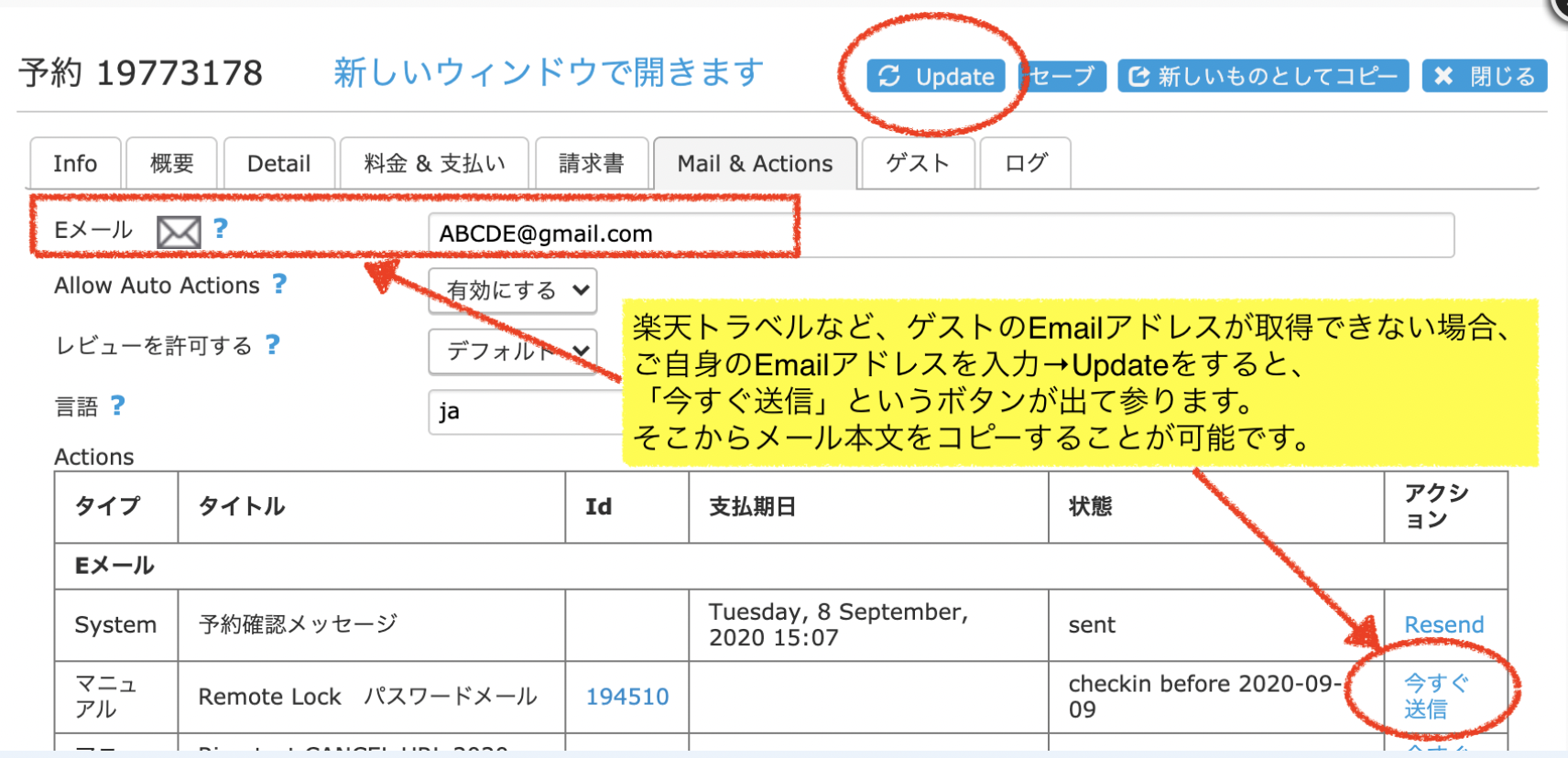Remote Lockで設定するパスワードを全てBeds24上で一括発行・管理、ゲストへ通知することが可能になります。