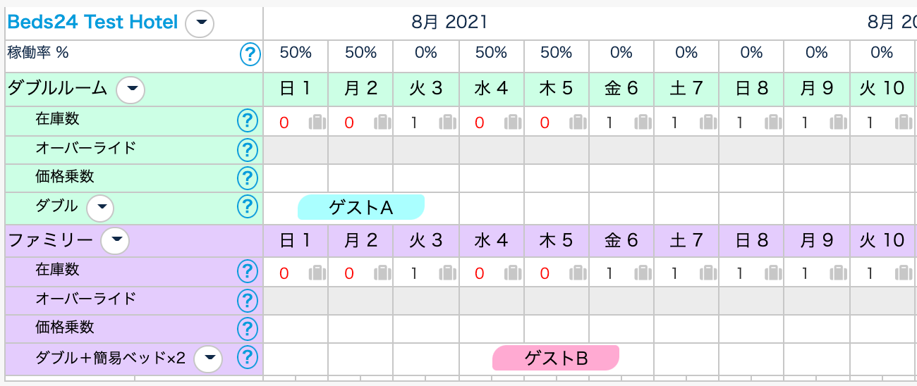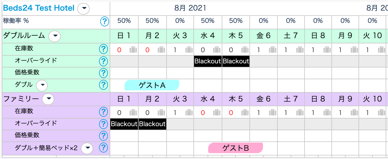 ・ファミリーに予約が入ったら、ダブルの在庫を閉じる必要あり。