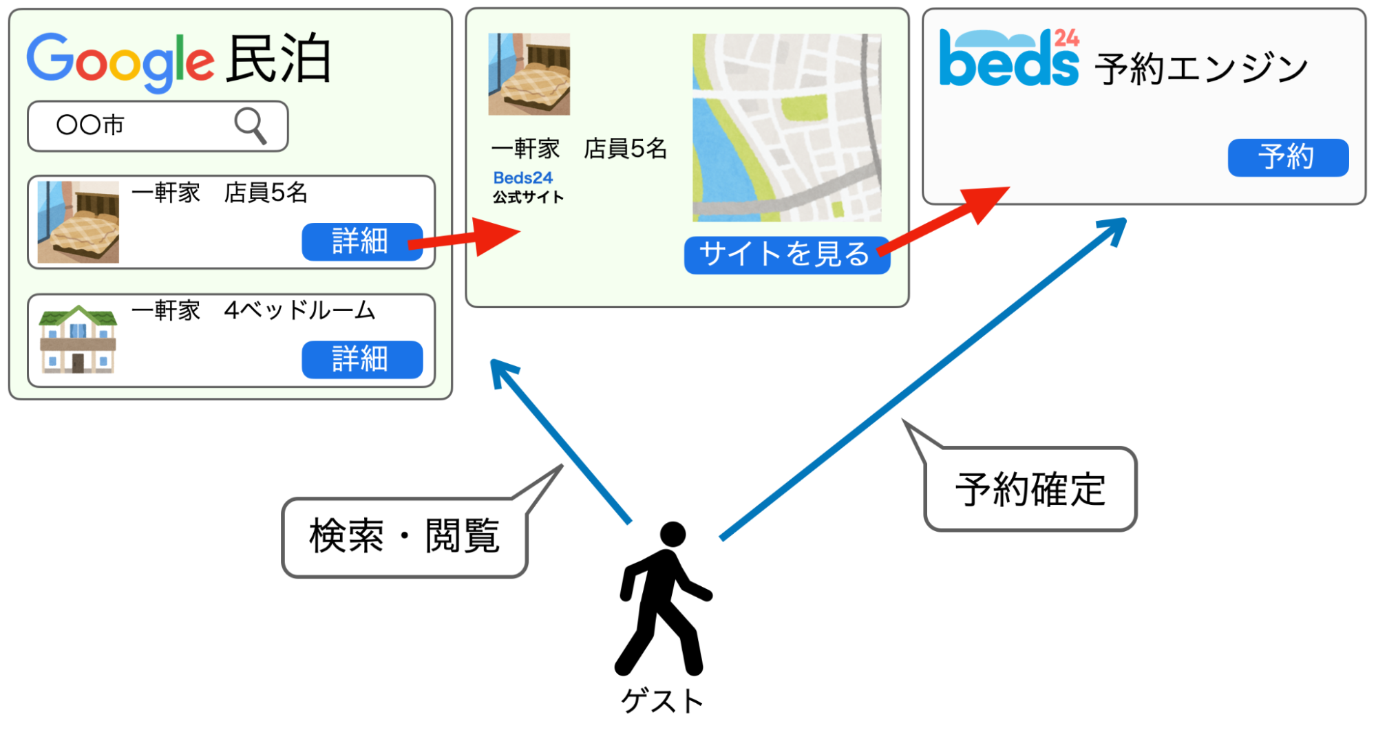 「Google民泊(Googleの詳細ページへ)」 × Beds24