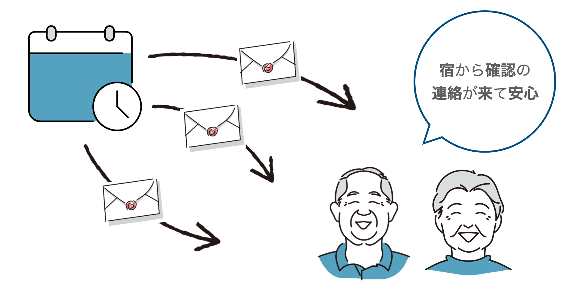 - 宿から連絡があれば安心できるが、連絡がないと一方通行かなと思う