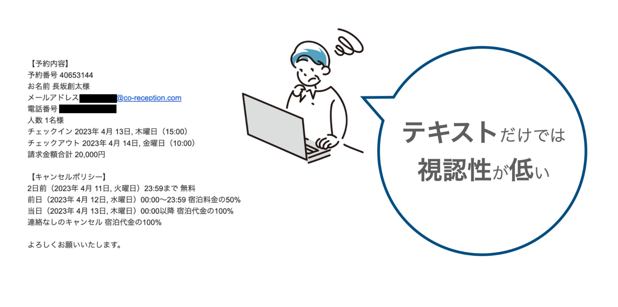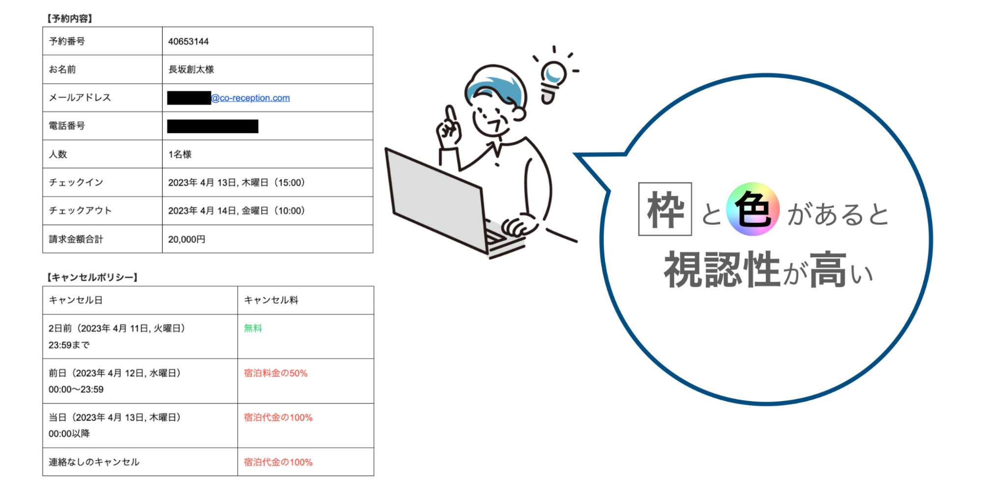 枠や色を使って、予約確認メールの視認性を高めましょう。