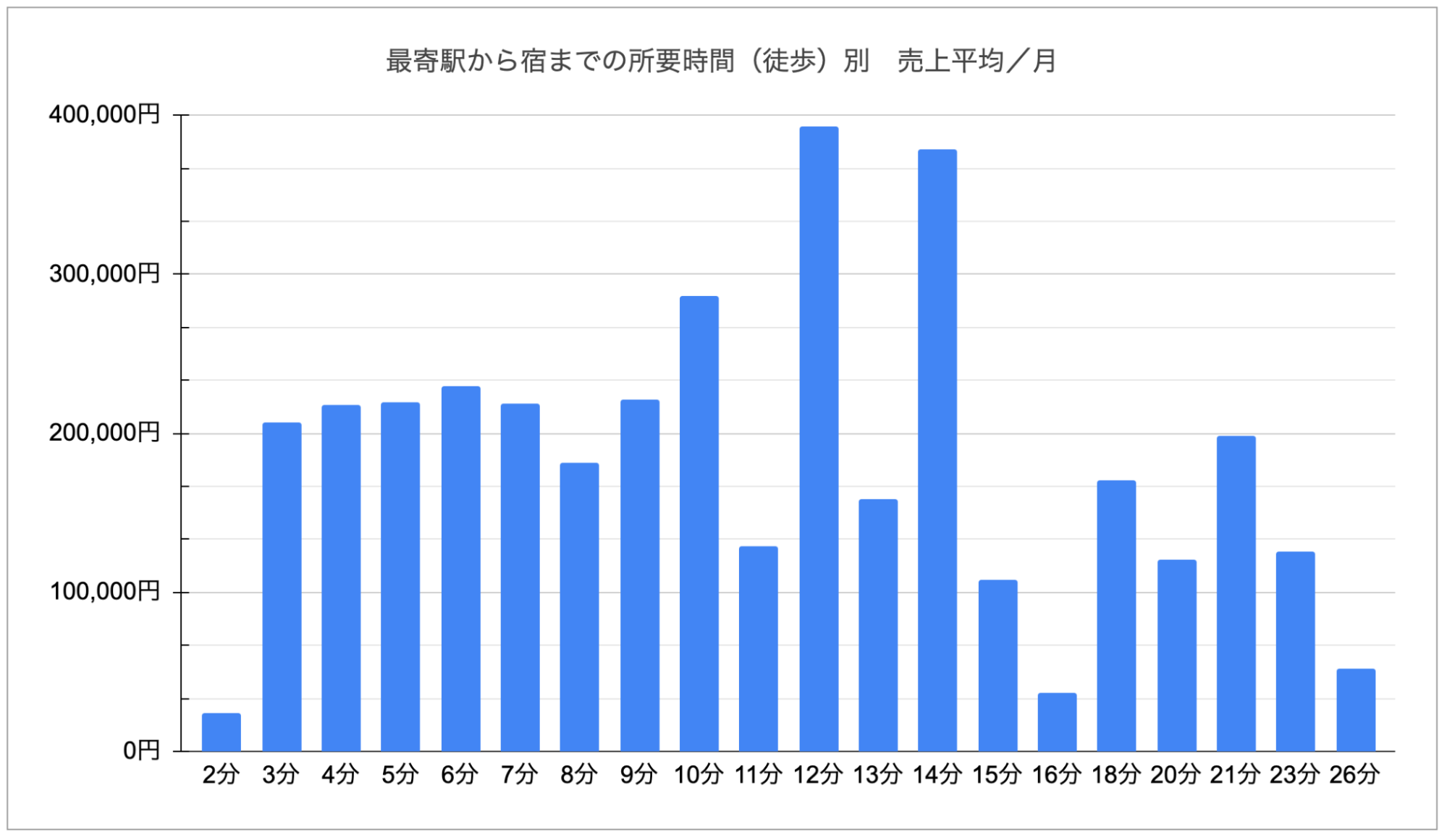 駅から徒歩10分以内の物件は、売上が安定しています。