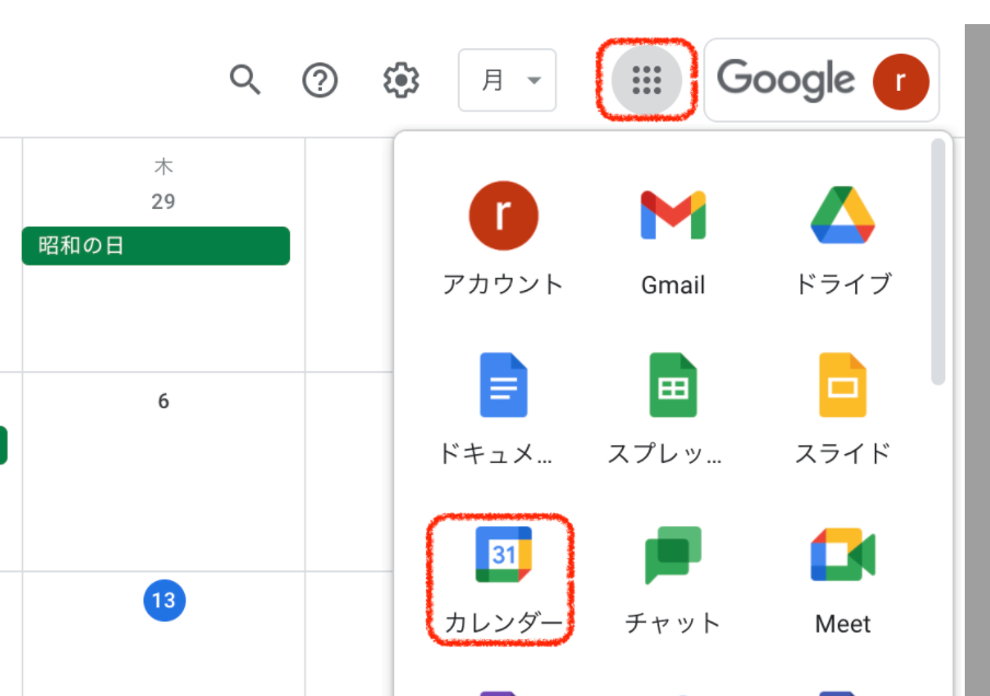 1.Googleアカウントにログイン後、Googleカレンダーを開きます。