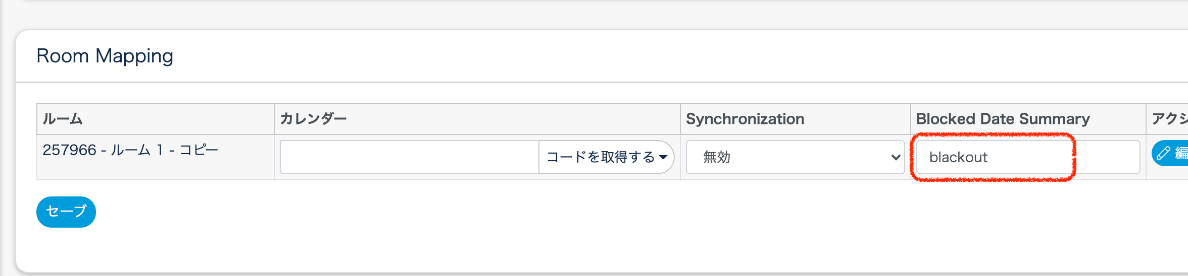 7.「Blocked Date Summary」に「Blackout」を入力してセーブします。