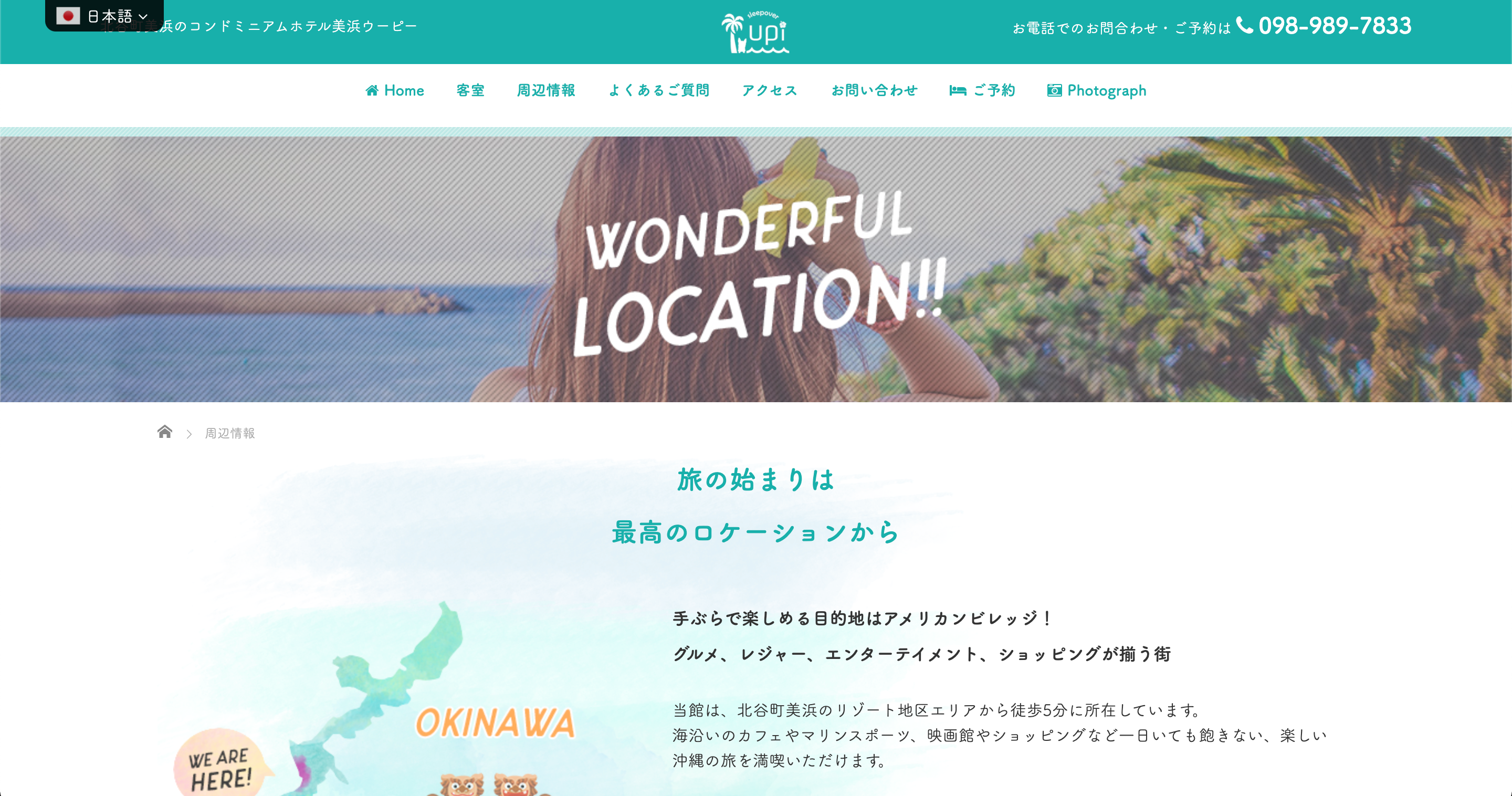 オリジナルページの例(https://upi-okinawa.com/nearby-facilities/)
