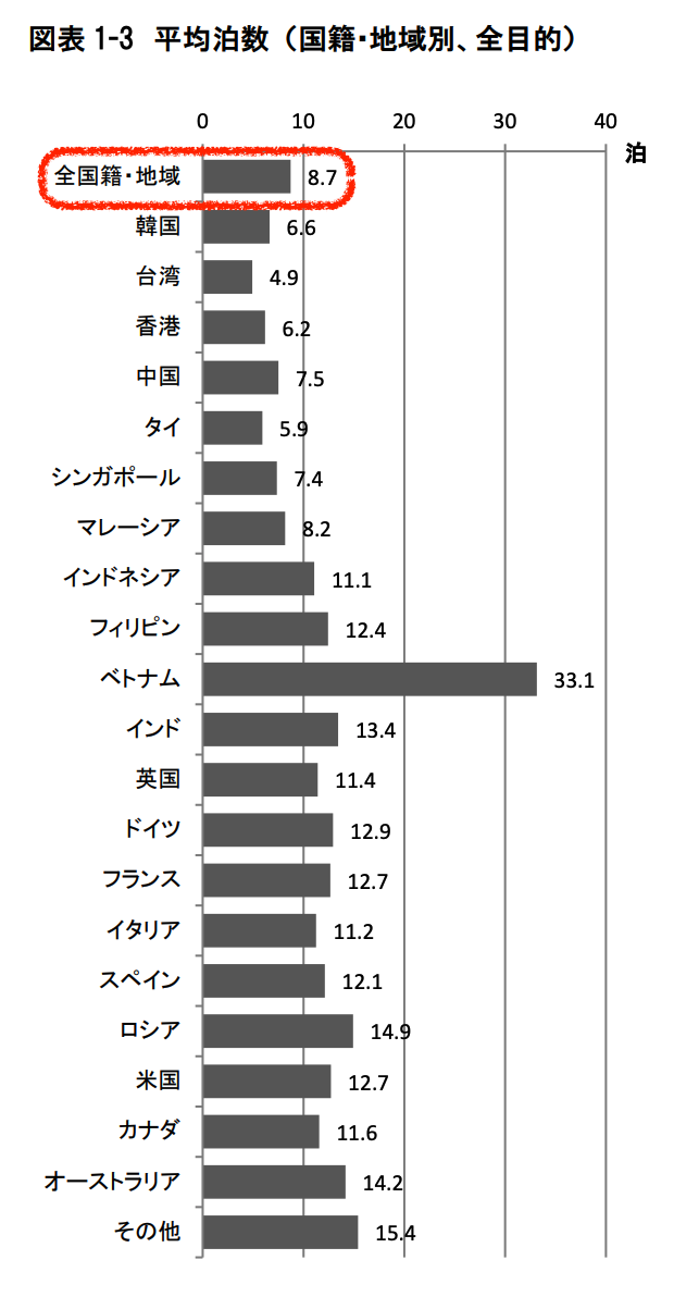 9日以内に制限する理由は、訪日外国人の平均泊数が8.7のためです。