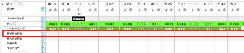 カレンダーの最低宿泊日数を変更