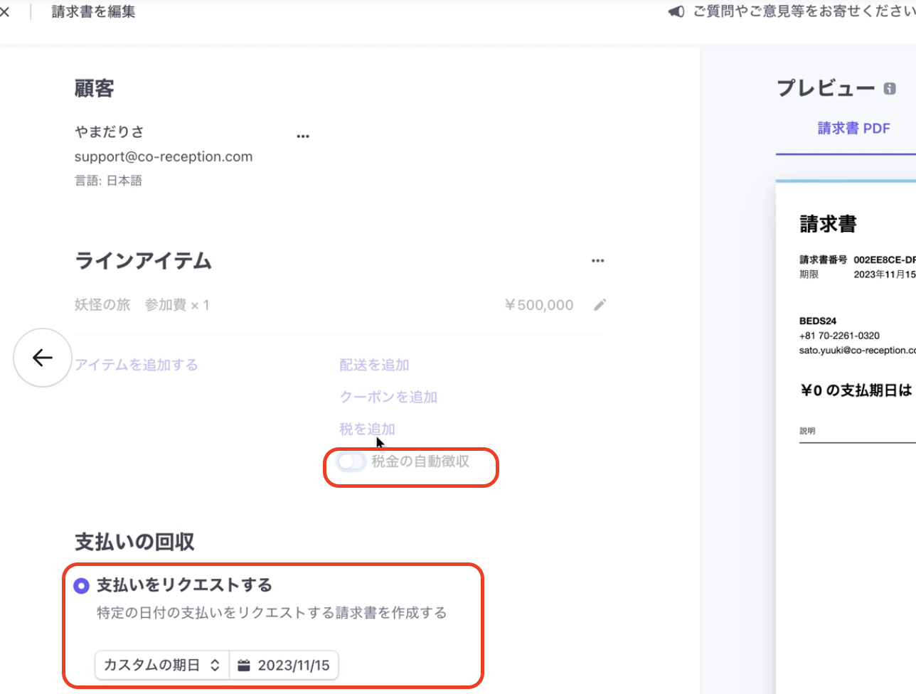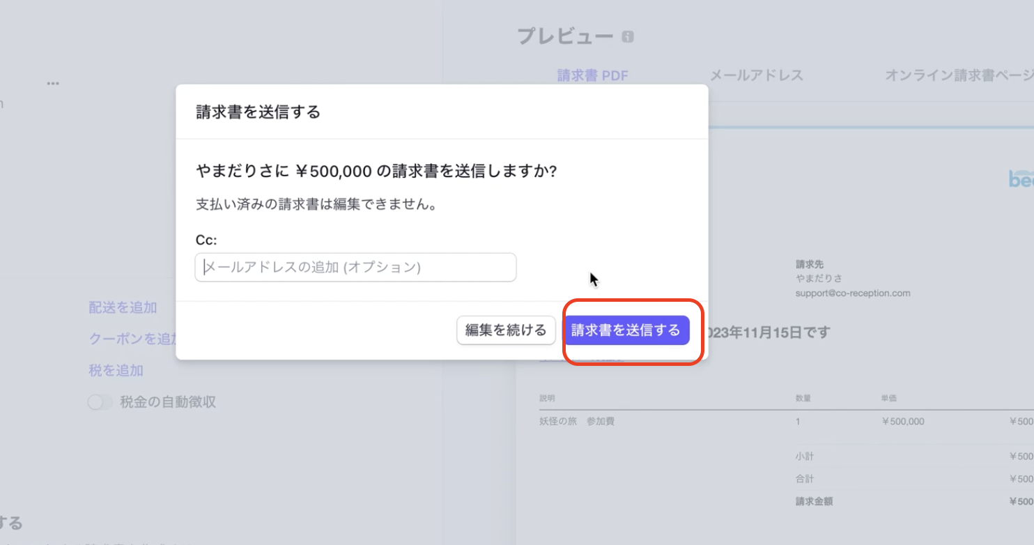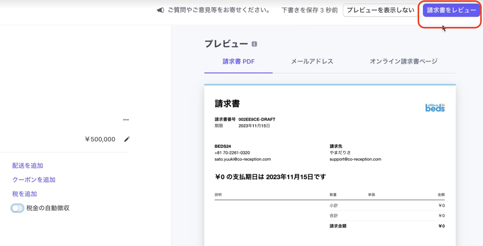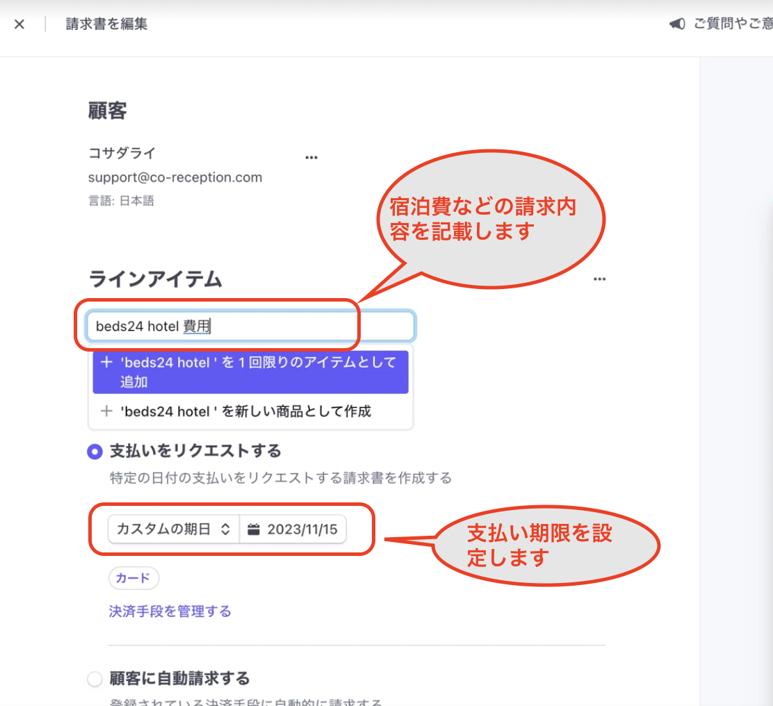 Stripe側で請求書を作成してゲストに送付する方法