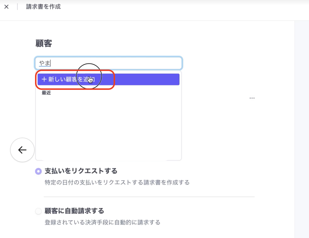 ②新しい顧客を追加→名前・メールアドレスを追加し