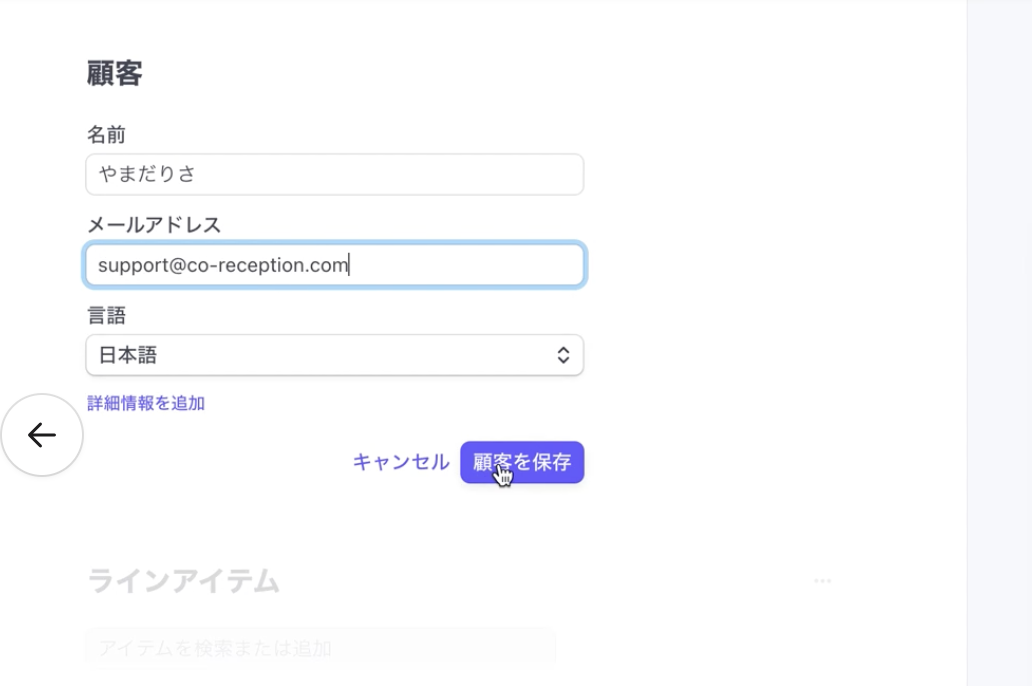 「顧客を保存」ボタンをクリック