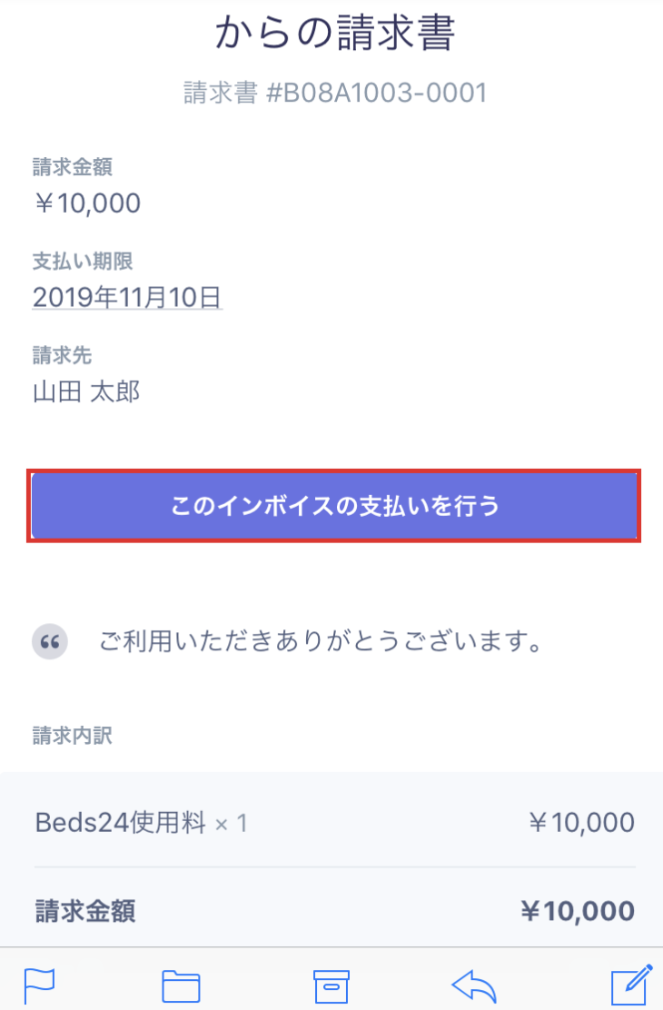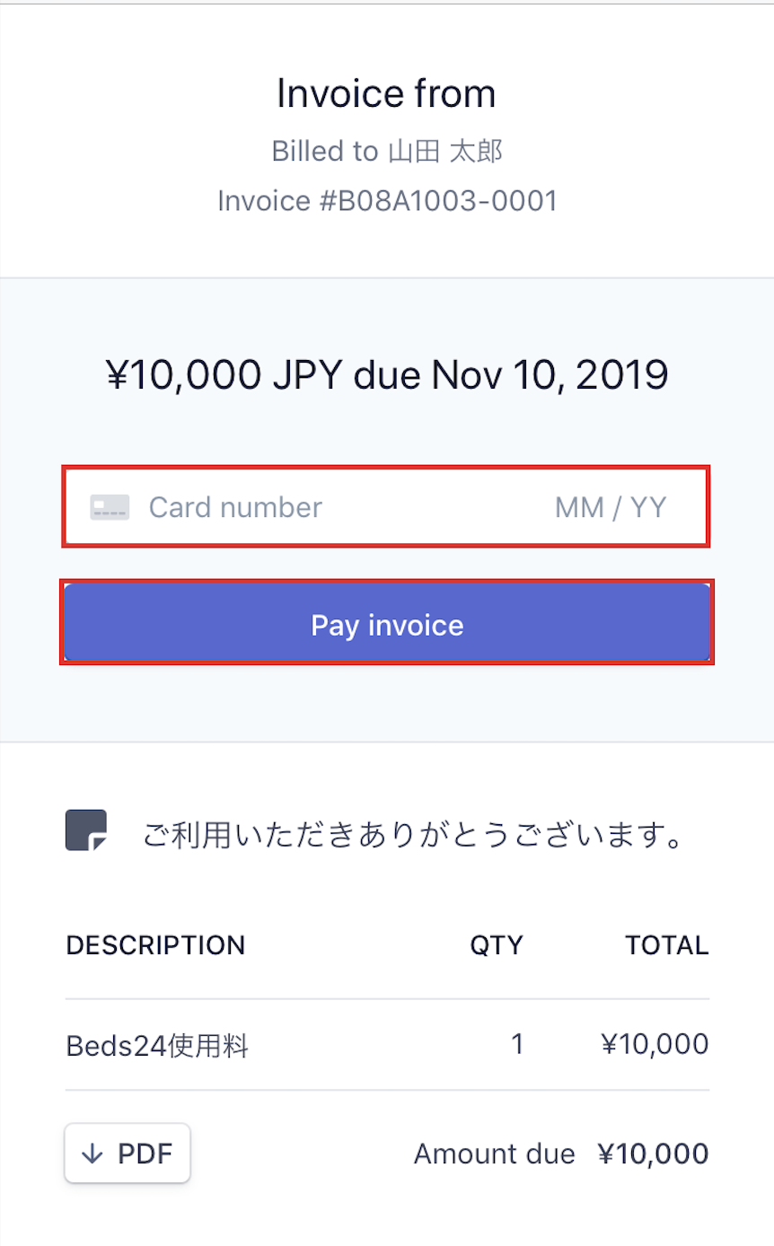 請求書が送信されるとゲストのEmailアドレスにこのような請求書が受信されます。