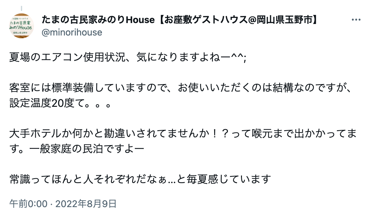 以下は、ゲストがエアコンの温度を極端に設定していたケースです。