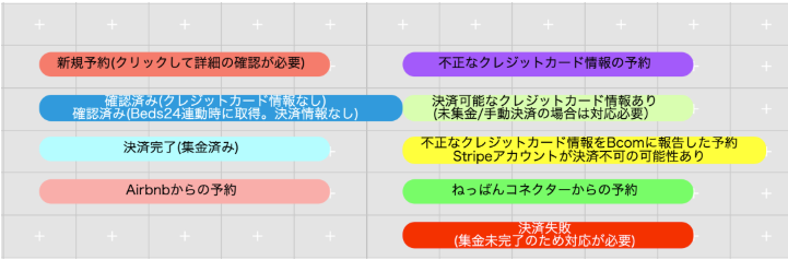 予約の色の意味と予約ごとの対応方法について、より詳しい説明はこちらをご覧ください。