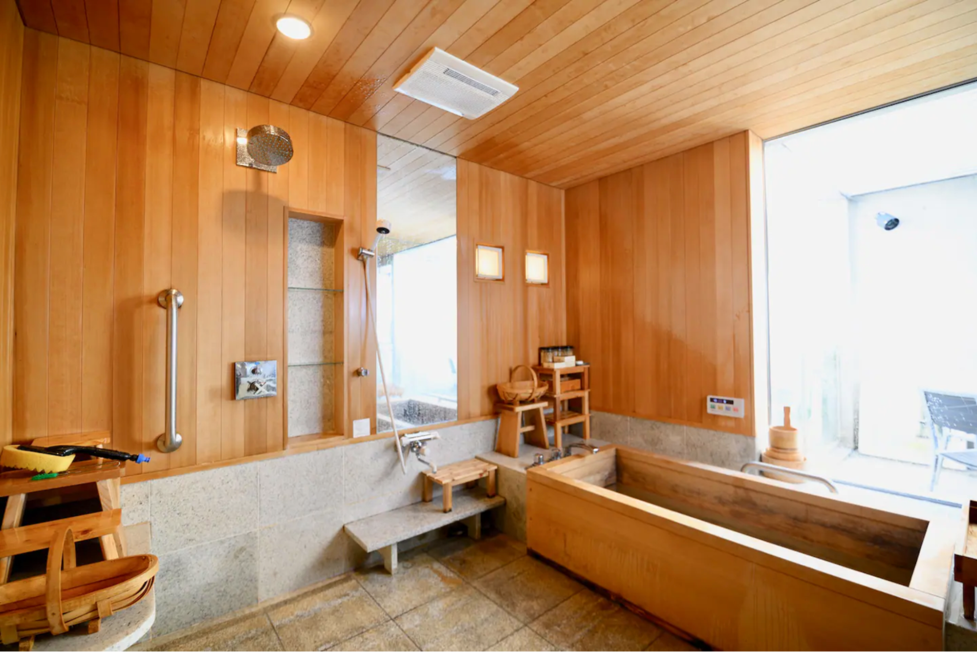 アウトドアから帰ってきたら、掛け流し温泉で疲れを癒しましょう。