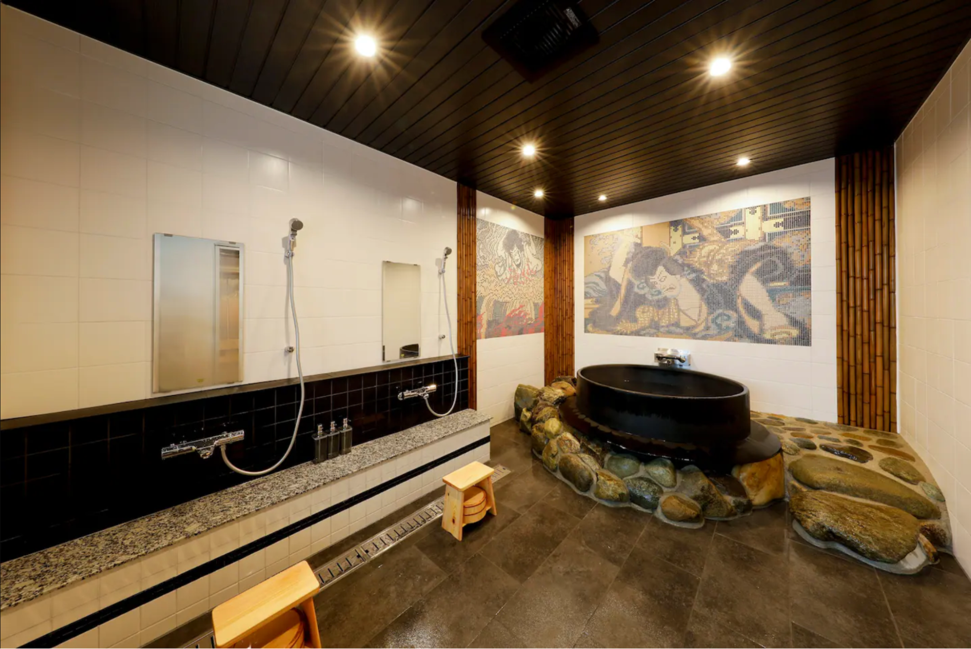 タイルで描かれた石川五右衛門の錦絵が雰囲気を演出していますね。