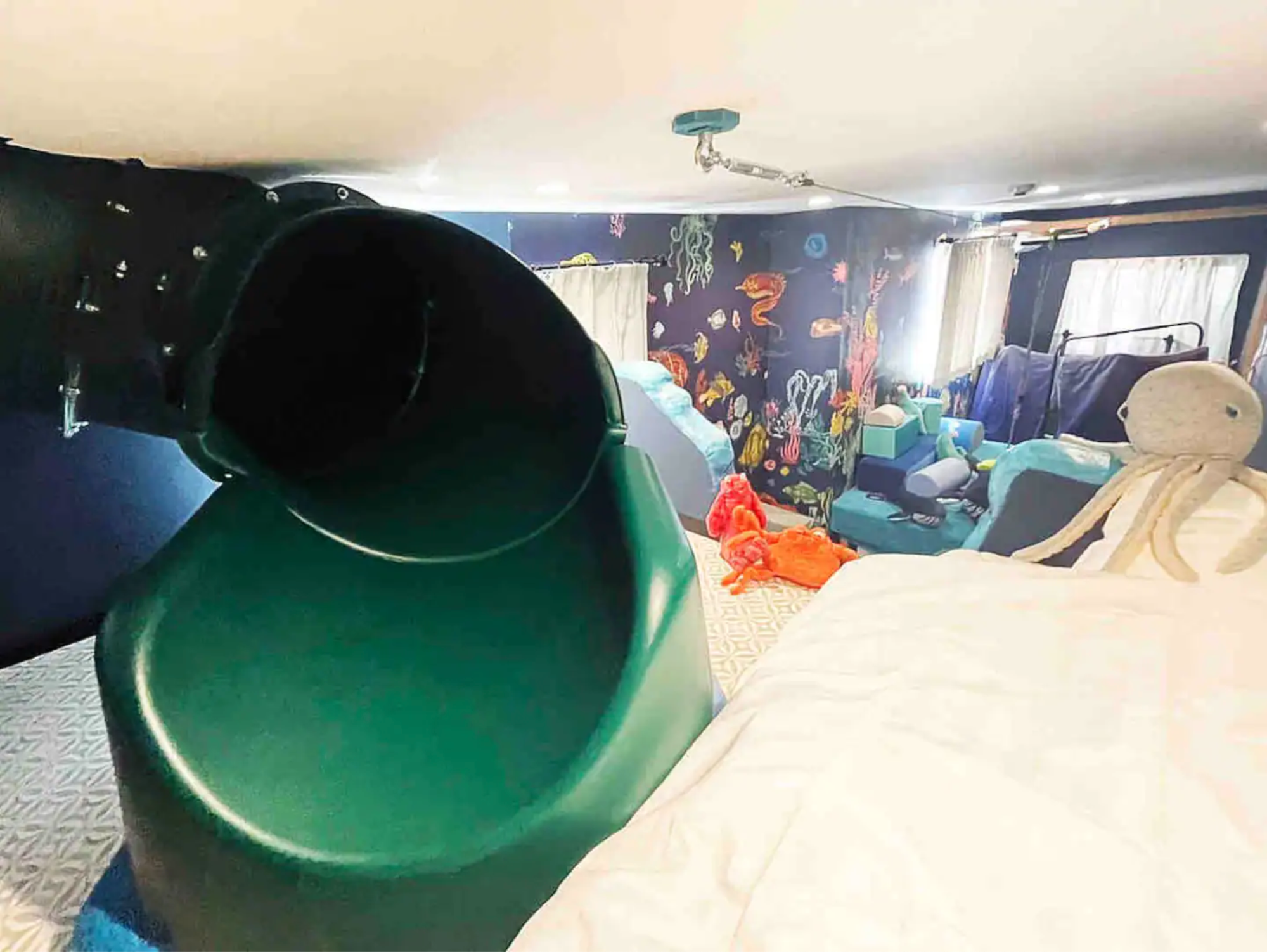 2階から1階へは、すべり台で降りることができます。