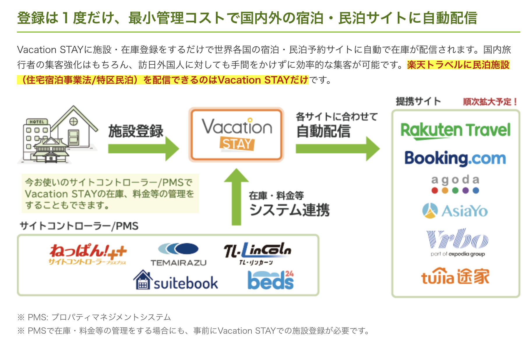 Vacation STAYに掲載すると、自動的に他のOTAでも販売が始まります。