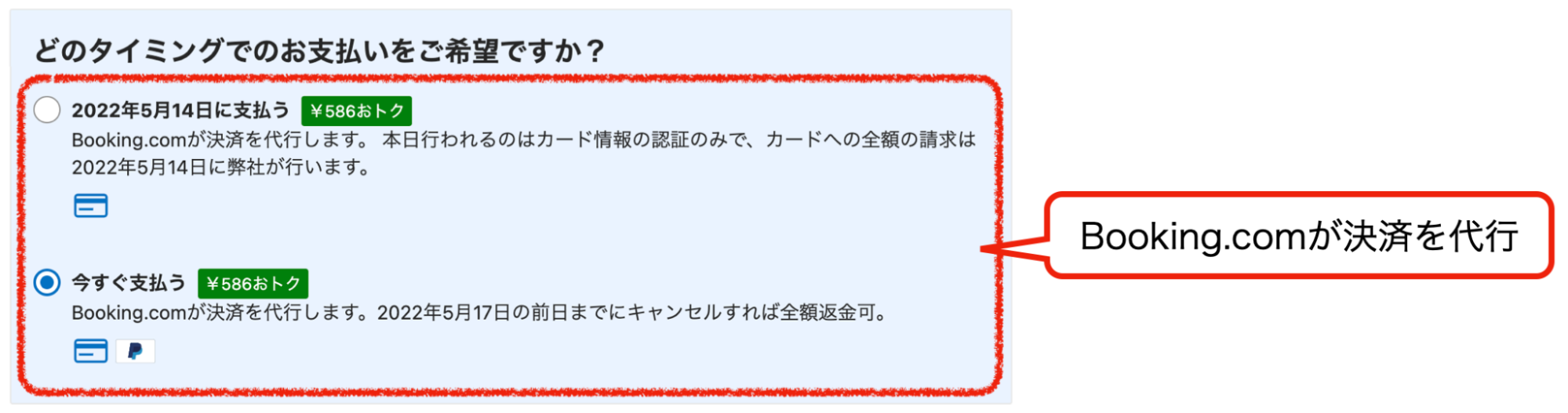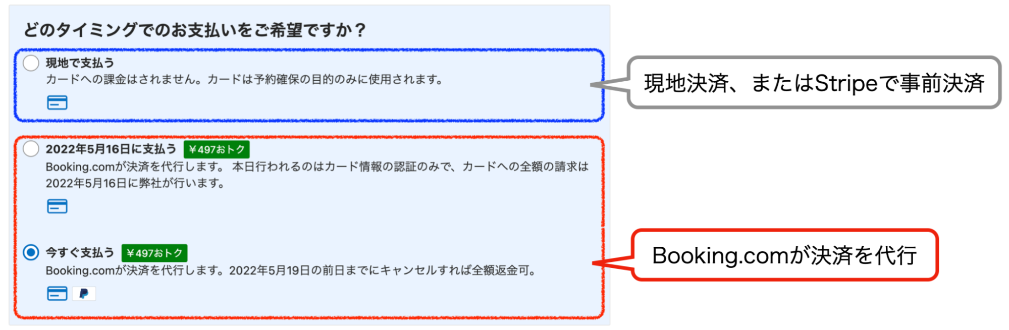 - 『現地で支払う』以外は、すべてBooking.comが決済を代行