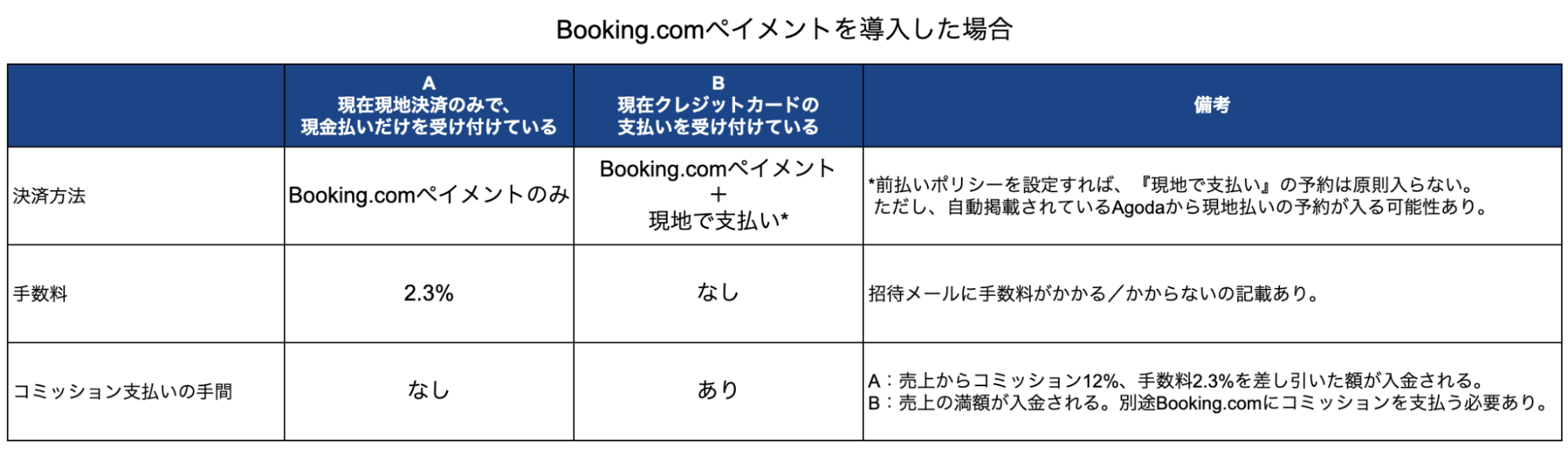 別途Booking.comからコミッション請求が届くため、支払い対応が必要です。