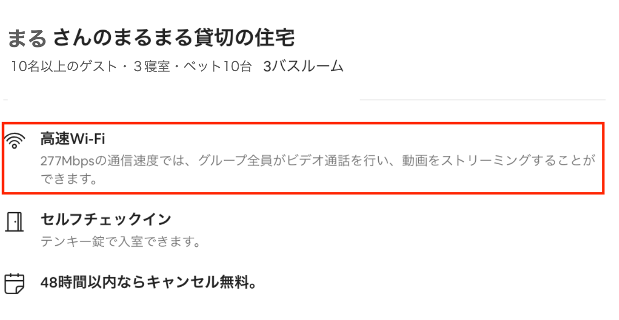 Airbnbのスーパーホストの施設の多くには、Wi-Fi速度の記載があります。