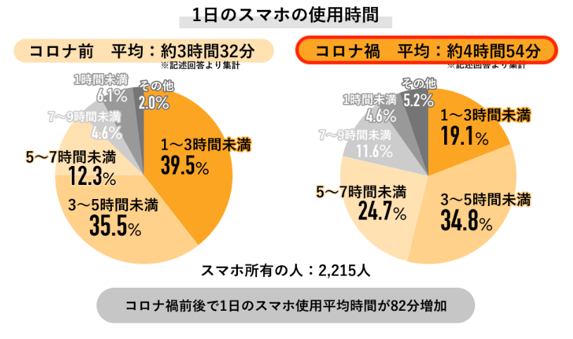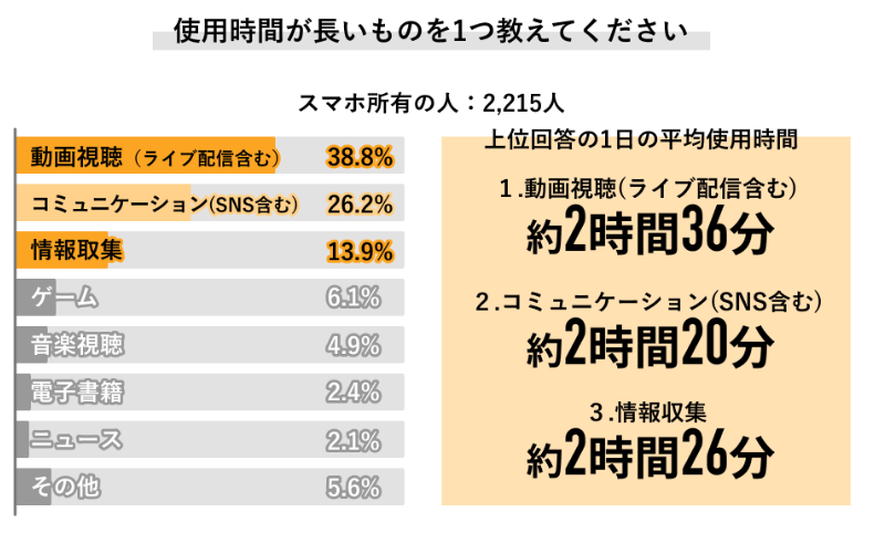 多くの人は、1日のうち約5時間(1日の20%)はスマホを使用しています。