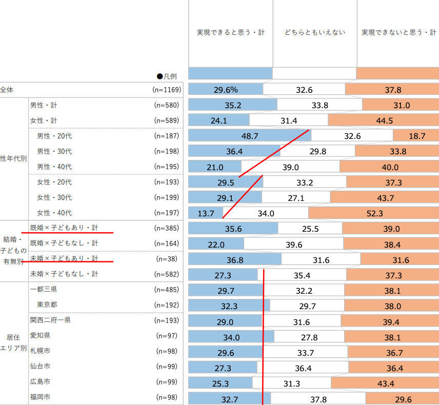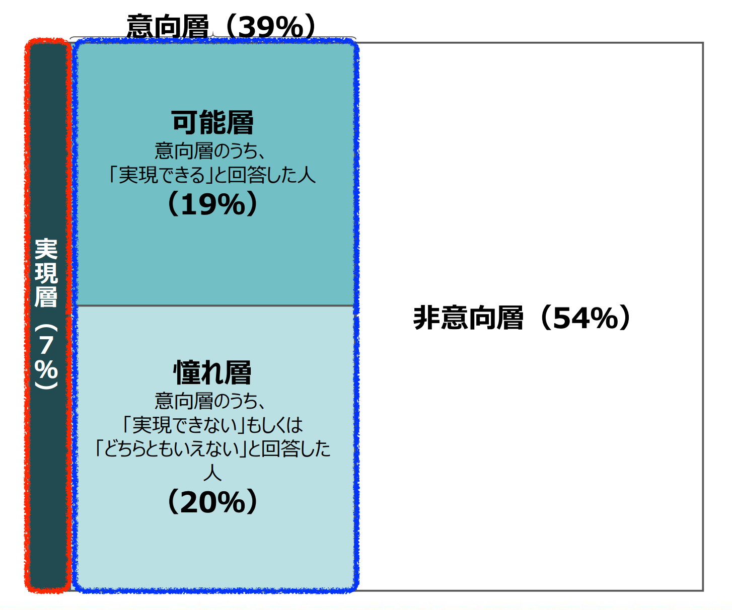 - 意向層(青枠:実現したい)・・・39%